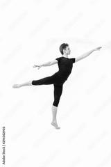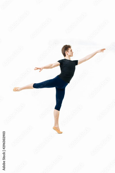 Actor Russian ballet,young ballet dancer performing complex elements on a white background