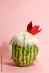 Freak watermelon wearing a wig