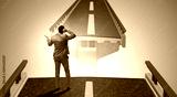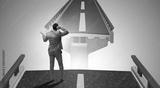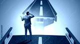 Young businessman in uncertainty concept with bridge