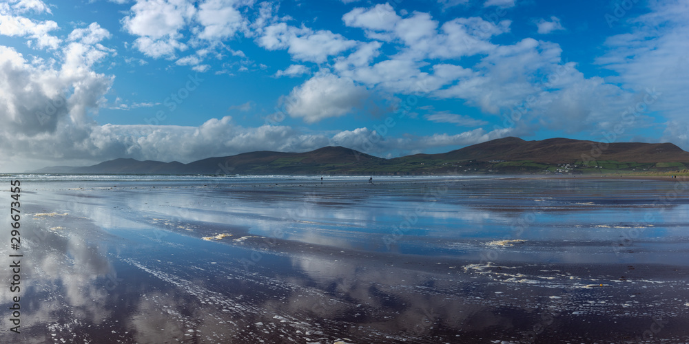 inch beach on the dingle peninsula in the south west coast of ireland on a sunny day in autumn showing golden sands and blue sky with clouds