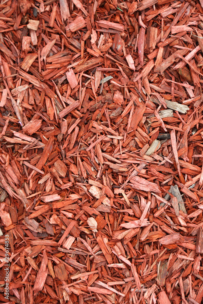 Red woodchips as textured background.