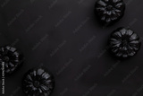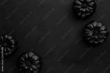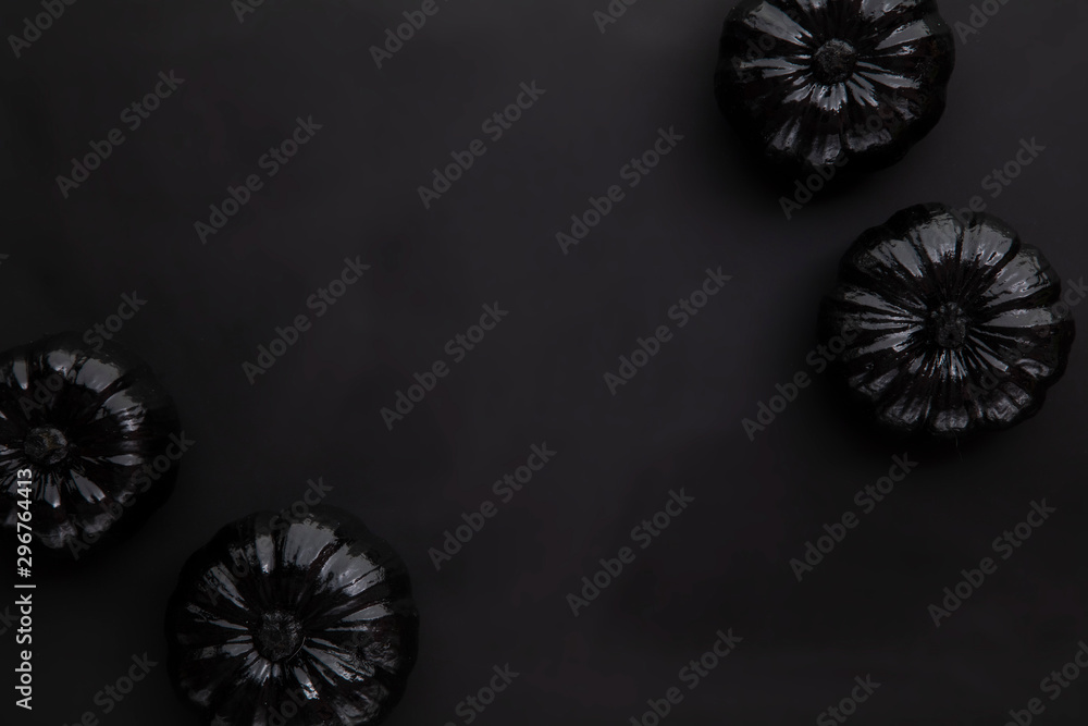 Spooky black pumpkins on a dark background. Halloween lay flat background