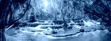 Colorful majestic waterfall in national park forest during autumn, panorama - Image