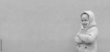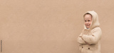 Little boy 4-5 years old, background beige wall, in a warm sweater with a hood, happy smiling. Free space for text. Emotions of joy of positive and New Year's mood.