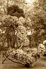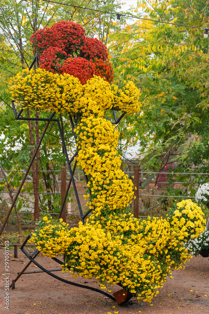 Anchor with chrysanthemum flowers in autumn park, Odessa, Ukraine