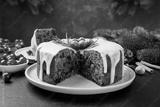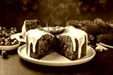 Traditional Christmas fruit cake, pudding with dried fruits, nuts and white glaze.