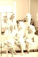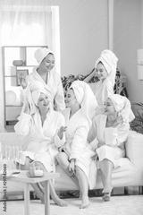 Happy young women during hen party at home