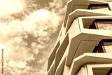 Close up view of mixture rectangular frame structure pattern of reflected glass windows exterior facade of high rise buildings.