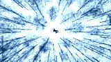 Dead man in forest on snow with gun and case of cash. Cold cloudy day in forest.