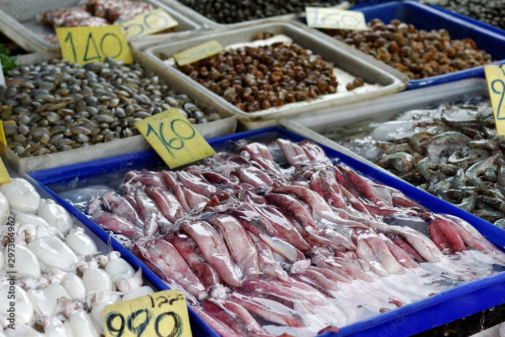 squid sell on seafood Local market
