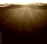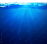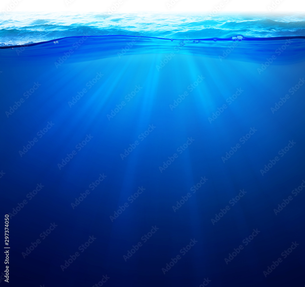 Undersea background Light rays under deep water with wave surface above
