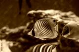 Yellow-faced Angelfish swimming over a tropical coral reef