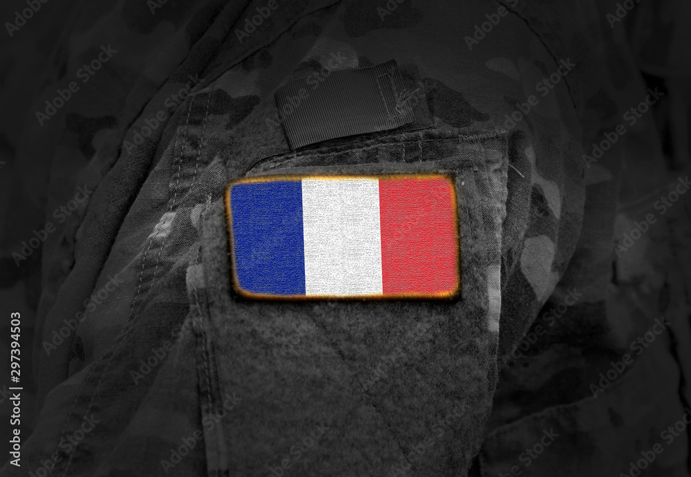 Flag of France on military uniform. Army, troops, soldier (collage).