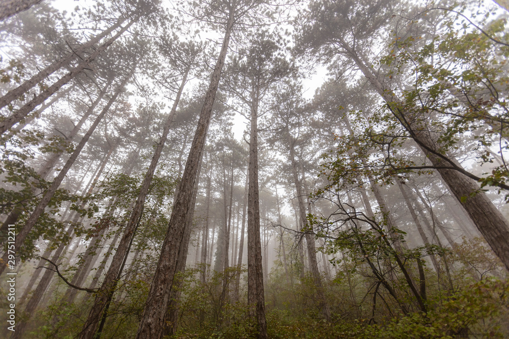 misty autumn forest in the morning