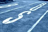 markierter Parkplatz für Busse am Ufer der Elbe in Magdeburg