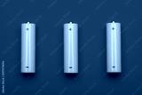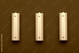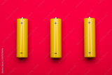 Yellow AA alkaline batteries on red background