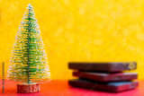 Festive Christmas tree and computer hard drives for data storage.