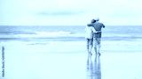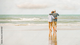 Happy asian senior couple have fun and enjoy at the beach