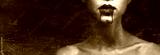 Zombie vampire woman with bloody lips. Fashion glamour halloween art design concept with copy space and scratches