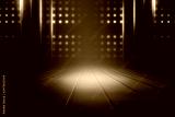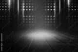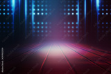 Empty background scene. Dark street reflection on wet asphalt. Rays of neon light in the dark, neon shapes, smoke. Background of an empty stage show. Abstract dark background.