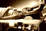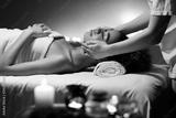 Relaxed african woman enjoying face massage in spa