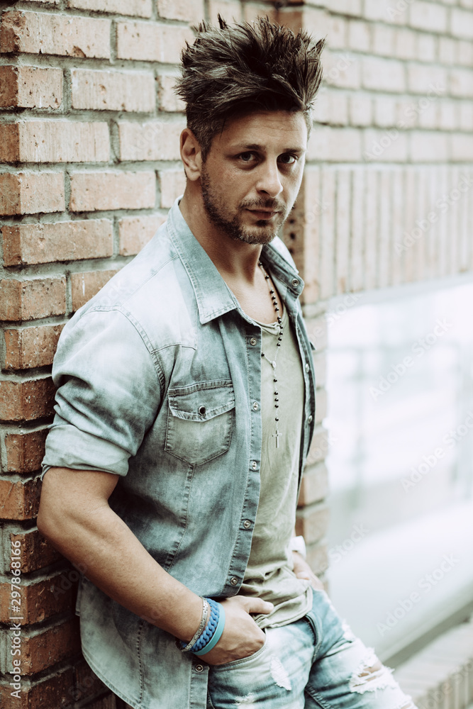 Portrait of handsome man in casual clothing posing in abandoned place, looking away to a side. Color Toned Image. Concept urban man.