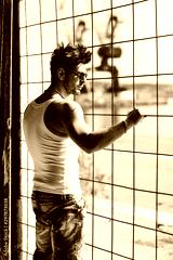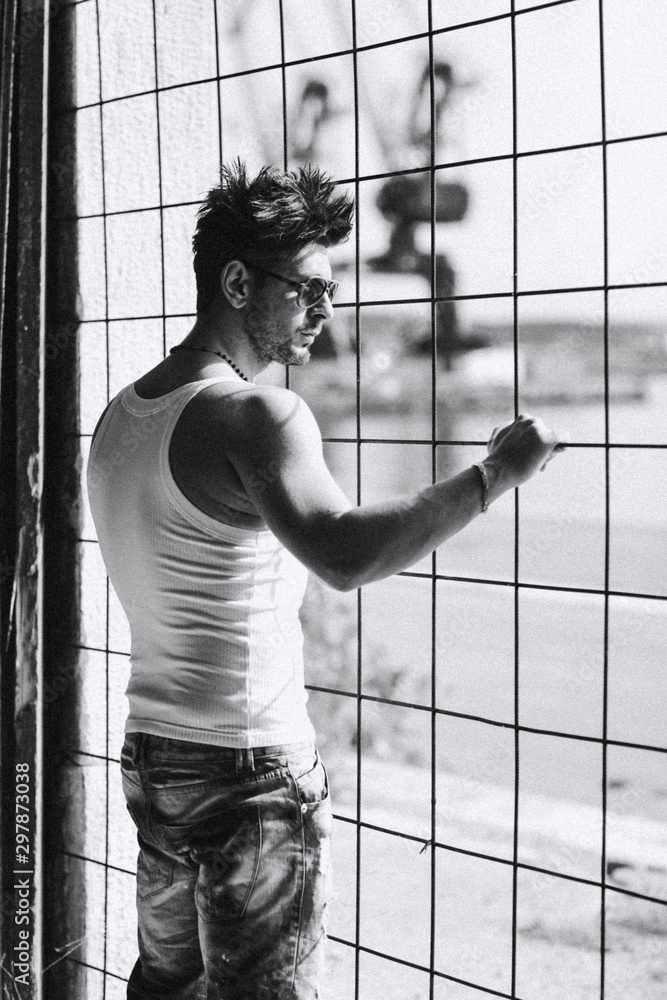 Portrait of handsome man in casual clothing posing in abandoned place, looking away to a side. Color Toned Image. Concept urban man.
