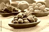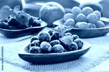 Fresh purple fruits. Juicy blueberries with other fruit in the background.