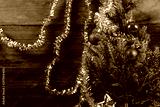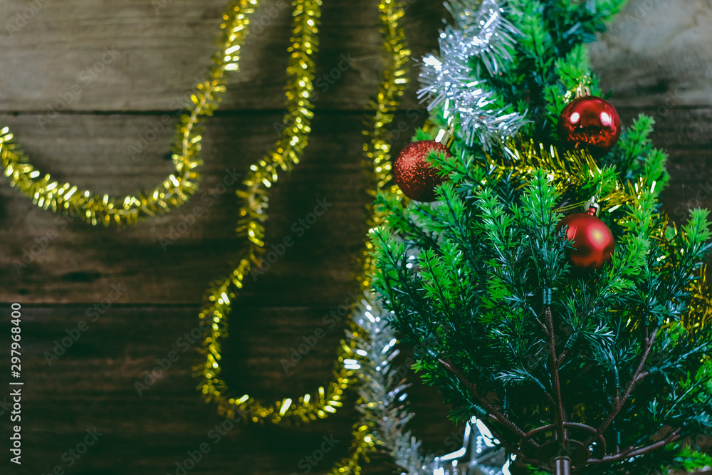 Green pine tree on christmas decoration on rustic wooden table,Christmas background.