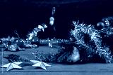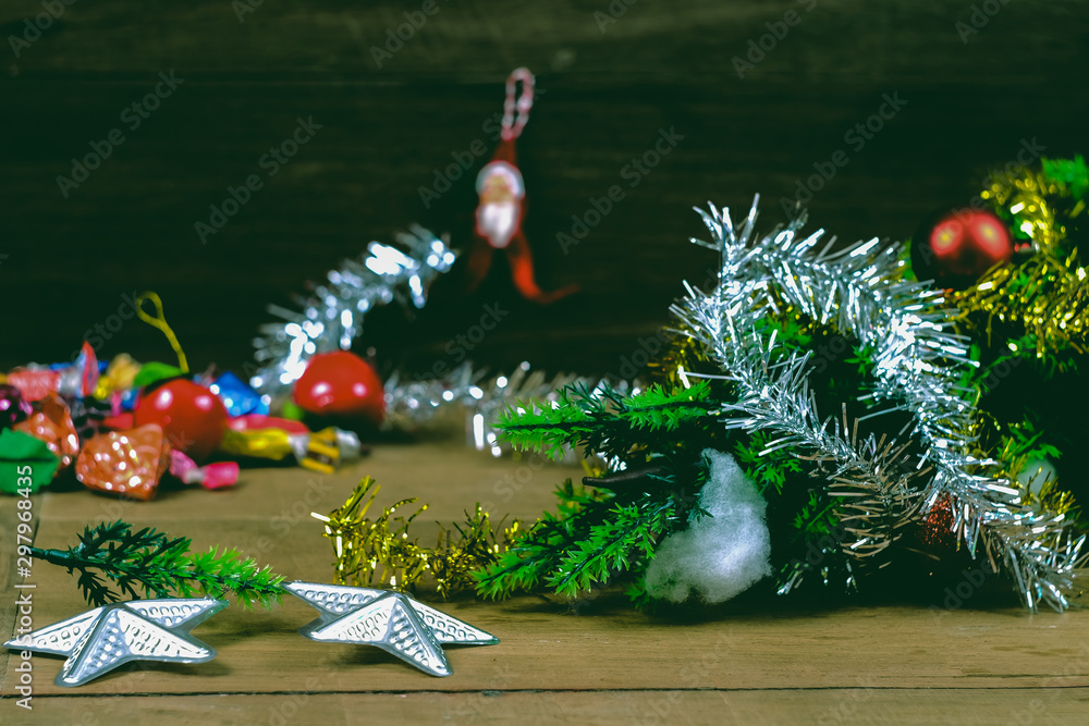 Silver star for christmas decoration on rustic wooden table,Christmas background.