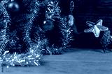 Silver star for christmas decoration on rustic wooden table,Christmas background.