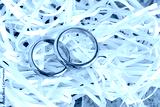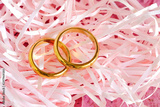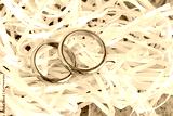 Duo golden wedding ring on paper chip background.Wedding concept.