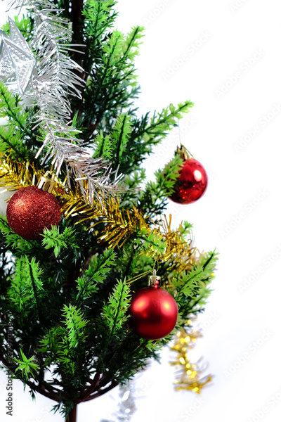 Green pine tree on christmas decoration on white background,Christmas concept.