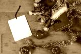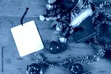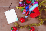 White bank card with christmas decoration on rustic wooden table,Christmas background.