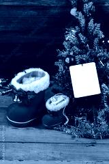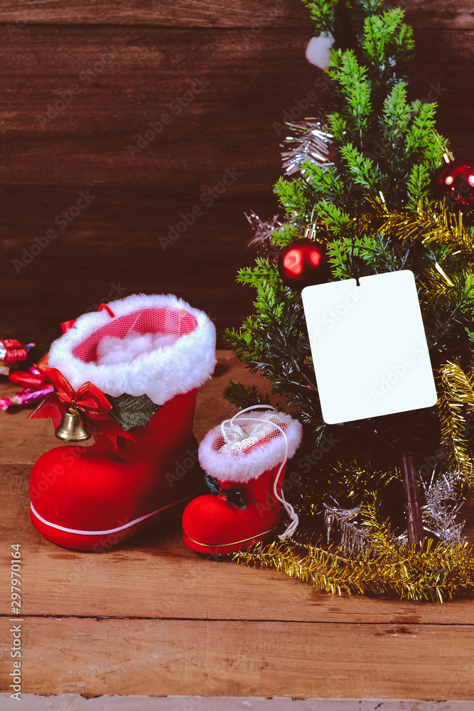 White bank card with christmas decoration on rustic wooden table,Christmas background.