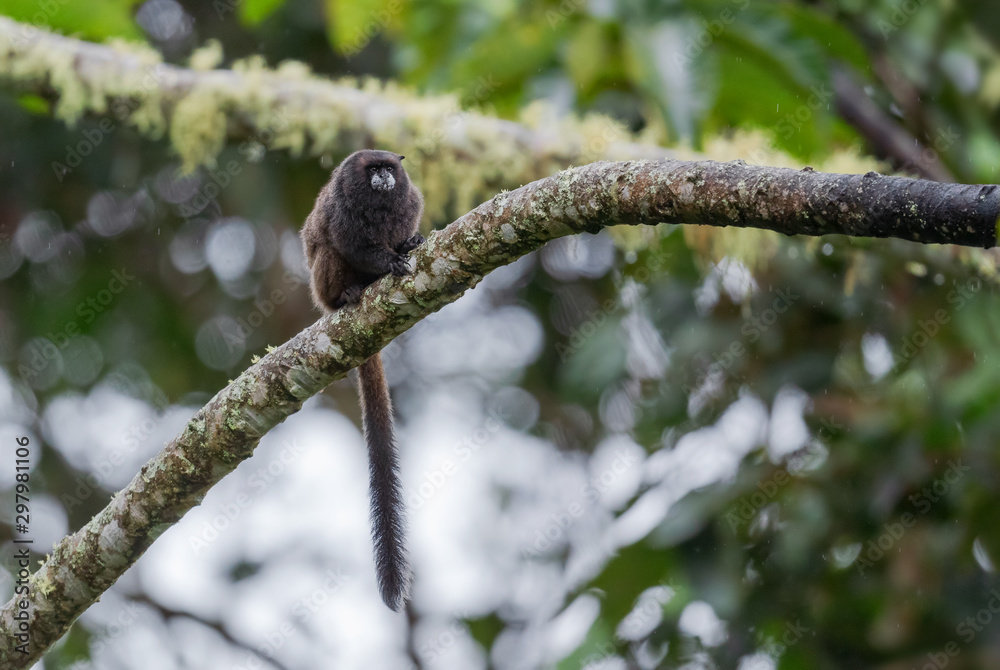 Graells's Black-mantle Tamarin- Saguinus nigricollis graellsi, shy tiny primate with white face from Andean slopes of South America, Wild Sumaco, Ecuador.