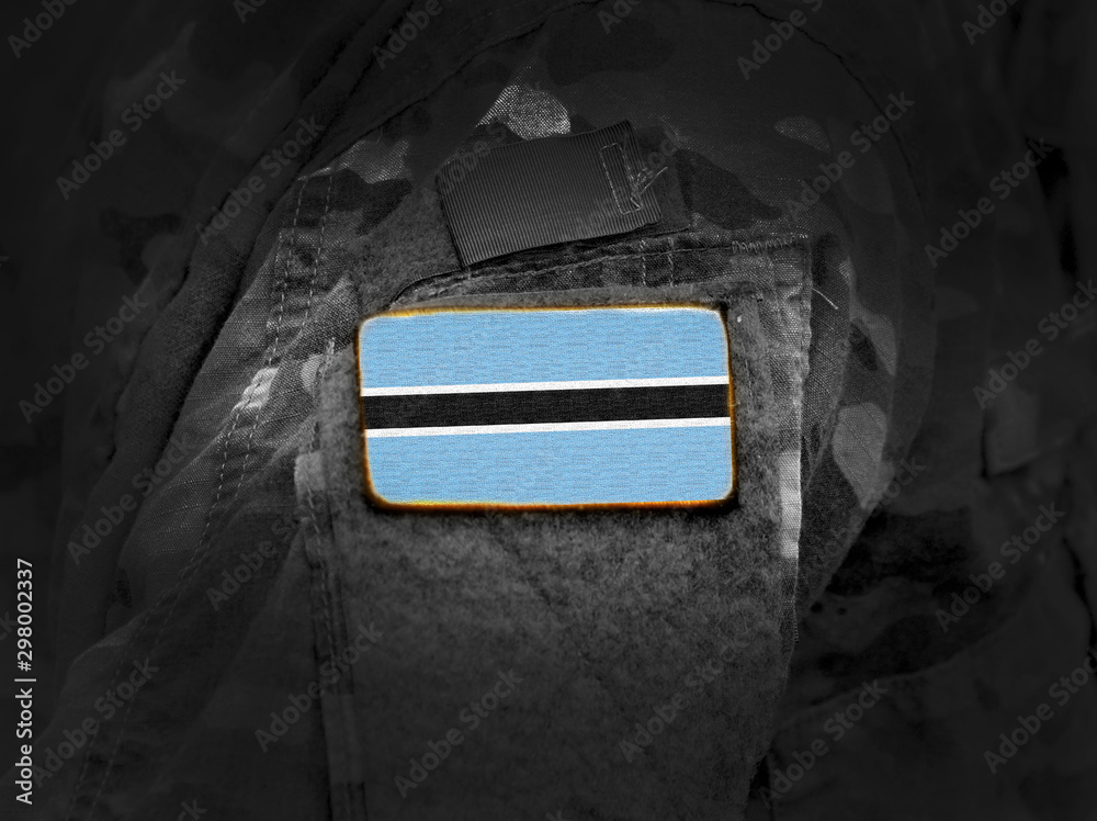 Flag of Botswana on military uniform. Army, troops, soldiers, Africa,(collage).