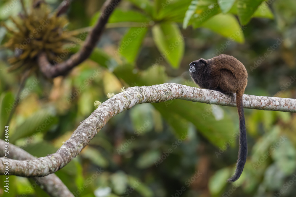 Graells's Black-mantle Tamarin- Saguinus nigricollis graellsi, shy tiny primate with white face from Andean slopes of South America, Wild Sumaco, Ecuador.