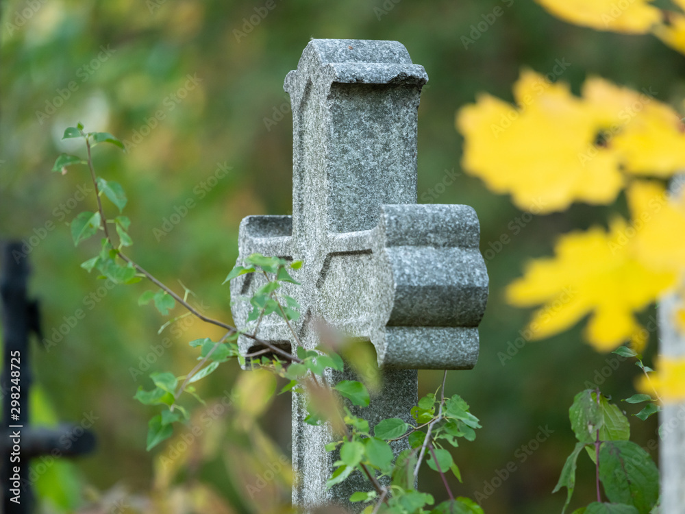 Detail of an old gravestone in St. Marx Cemetery in autumn