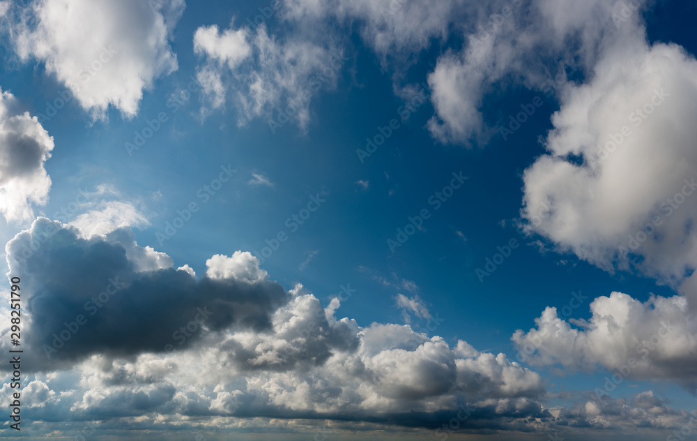Fantastic clouds against blue sky, panorama