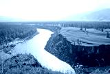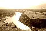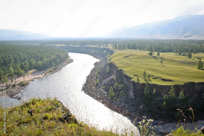 Mountain landscape - view of the plateau from above. River Oka Sayansk, Sayan Mountains, Siberia, Russia.