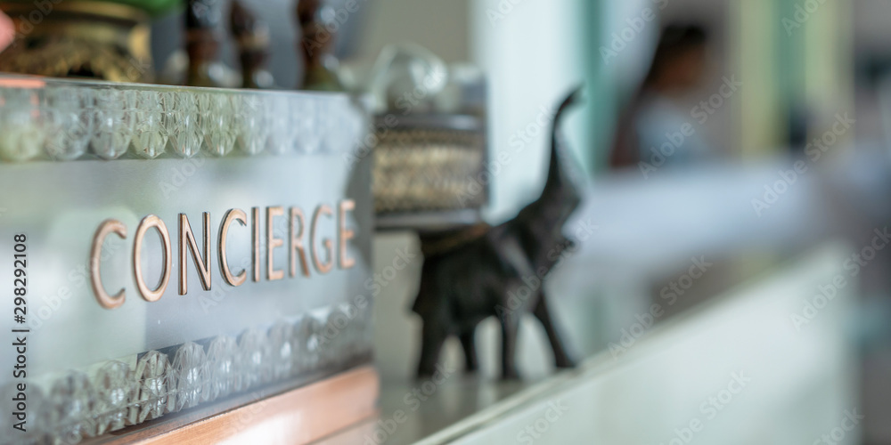 Concierge service counter of hotel, restaurant or apartment's front desk in luxury reception hall in Thailand with staff working for serving tourist guest or check-in customers