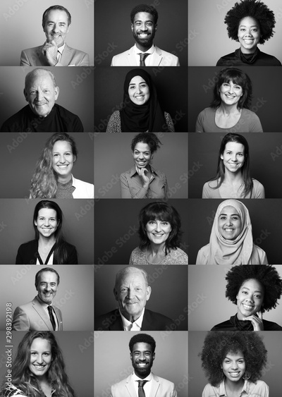 Group of 9 beautiful people in front of a background