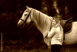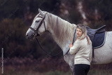 Beautiful girl posing with a purebred arabian horse outdoors.