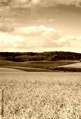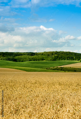 beautiful landscape of wheat field, ears and hills