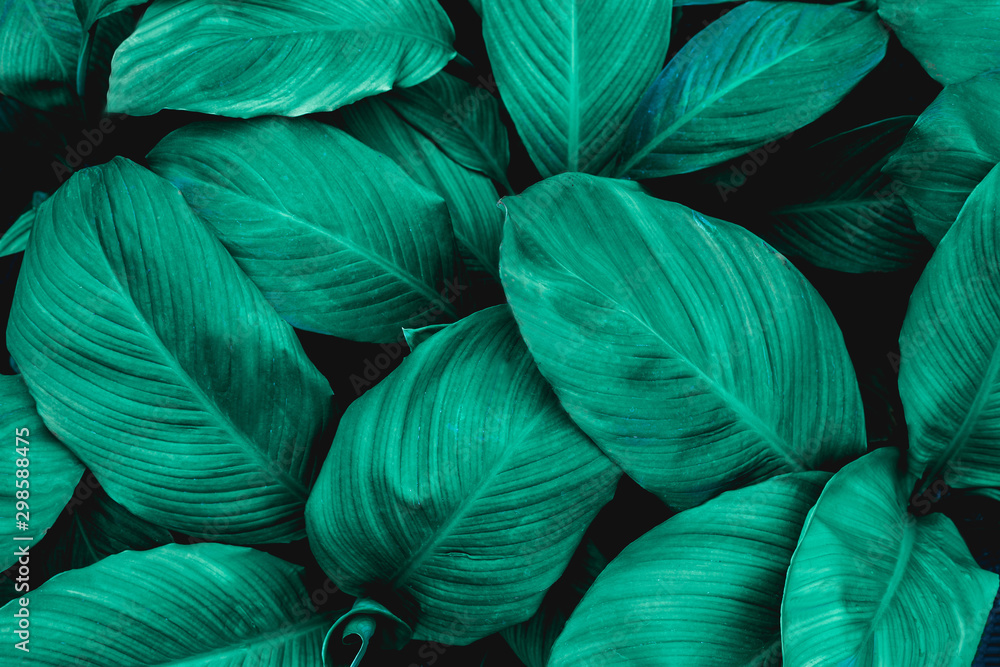 leaves of Spathiphyllum cannifolium, abstract green texture, nature background, tropical leaf