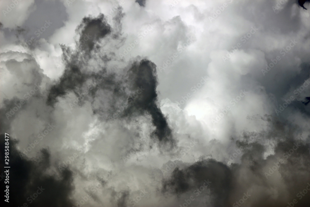 Close up detail of grey storm clouds provides an eerie cloudscape textured background