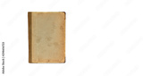 Vintage hardcover book on white background. Ancient textured paper cover notebook macro view. Copy text