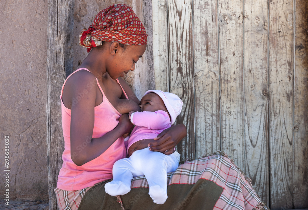 African mother breastfeeding