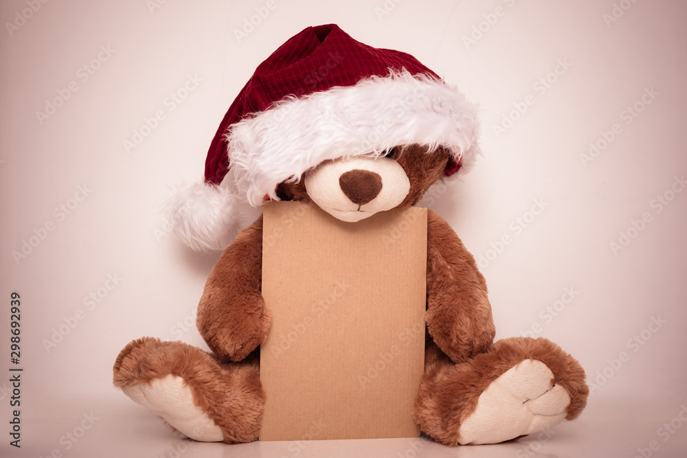 Christmas card with Teddy Bear. With holiday decoration and presents